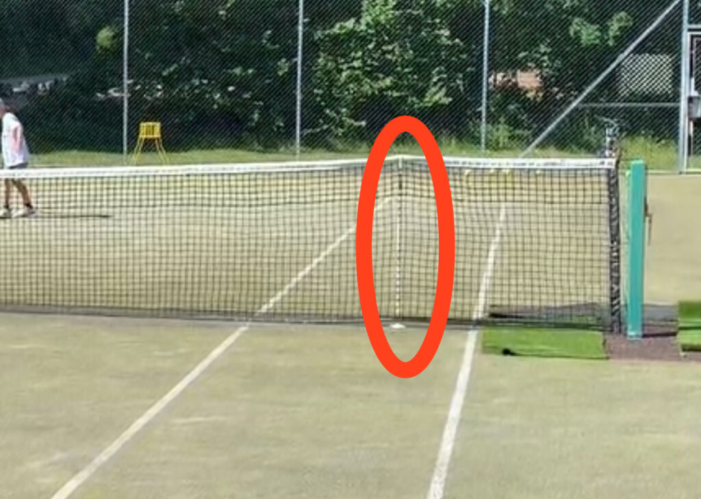 De løse nettstolene på hver side av nettet skal kun settes på sidene der det er merket av på banen (som vist på bildet), aldri mot midten av nettet da nettet går i stykker.